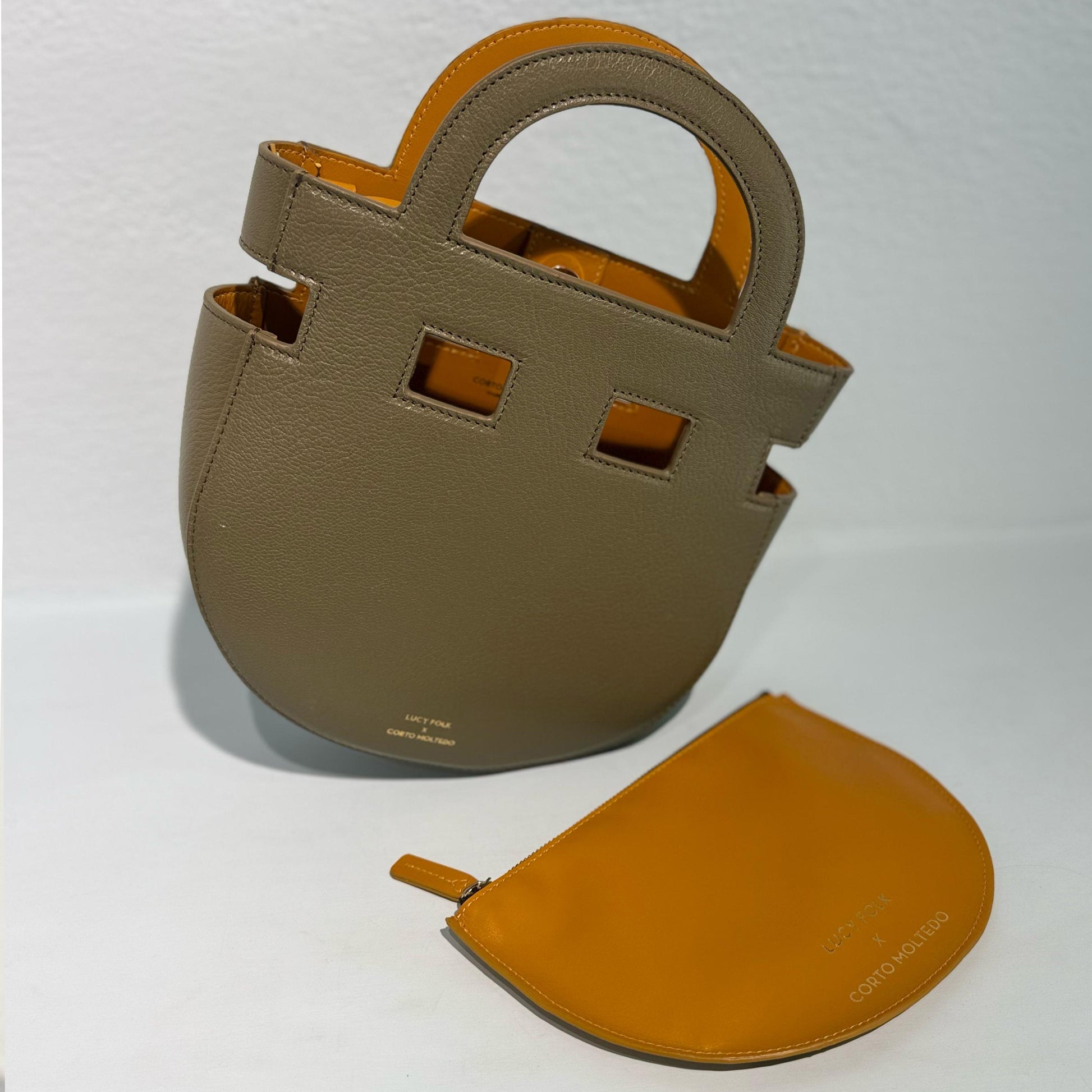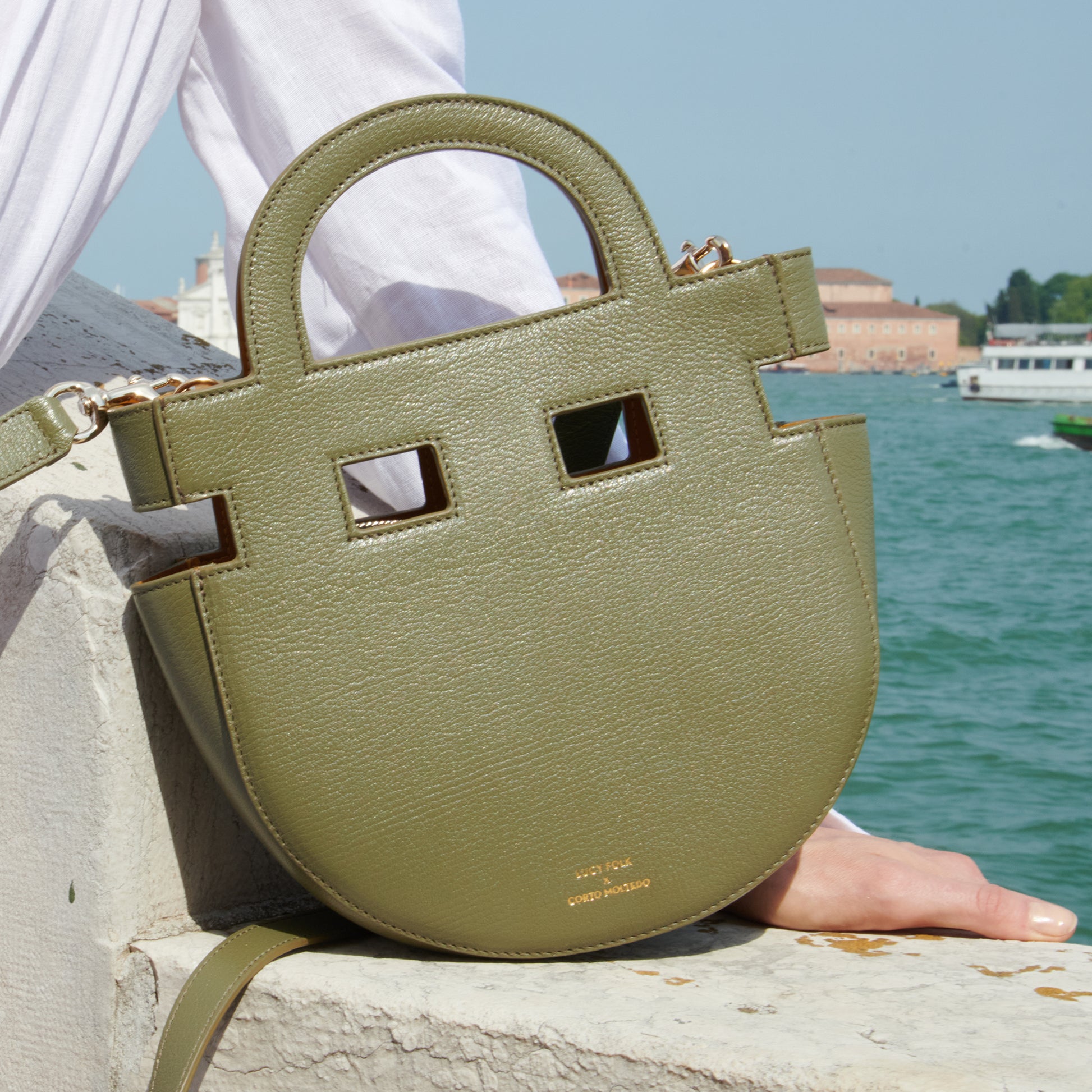 The Visage Bag Military Green is a collaboration between Lucy Folk and Gabriele Corto Moltedo, featuring a curved silhouette inspired by the natural shape of Playa del Silencio in Spain. Handcrafted in Florence, using premium leather, the bag includes an internal detachable zip pouch in mustard leather, an adjustable strap & push clasp fastening. The perfect blend of style and function. Dust bag included.