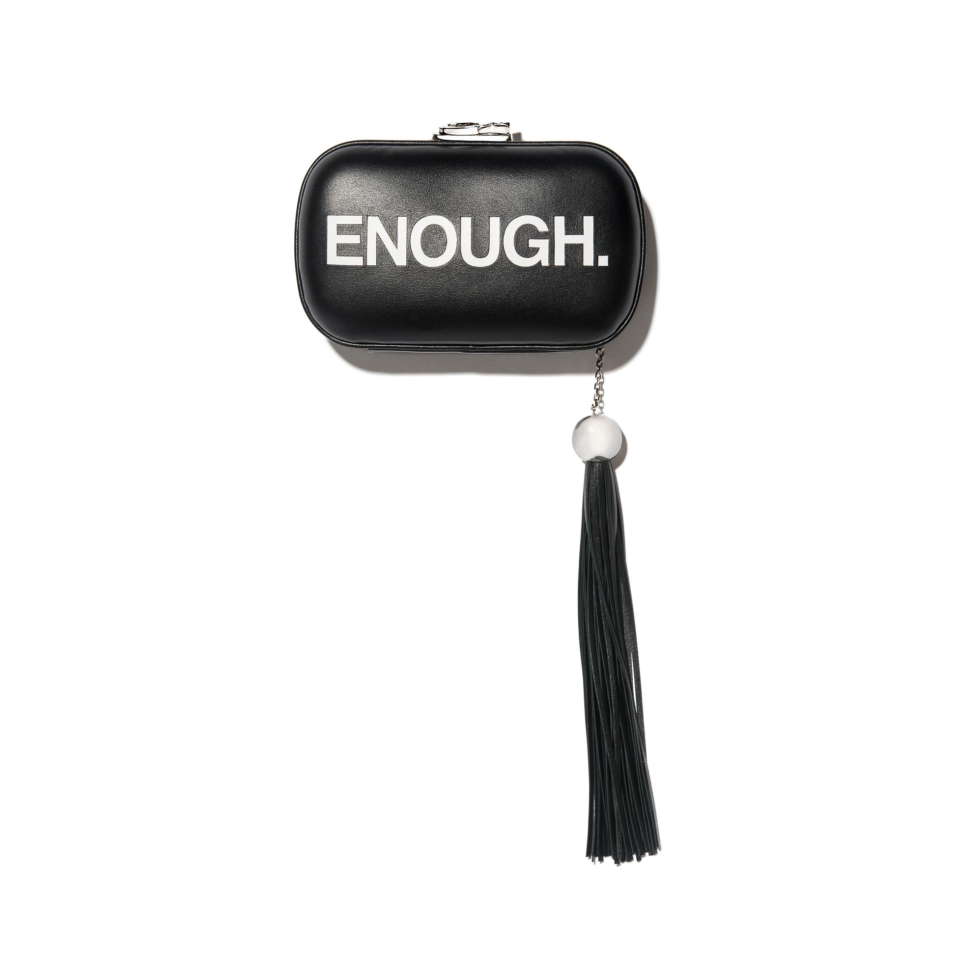 - 素材:十分なプリント、ブラックカーフレザーの外装、タッセル