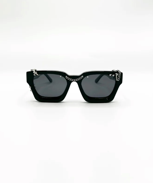 These square sunglasses redefine modern chic, featuring a striking design with silver metallic piercings.